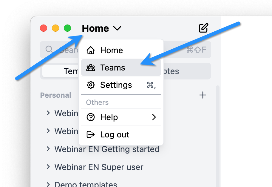 Creating a team with friends and colleagues is a great and easy way to share templates. Plus, creating a team is free for everyone.
